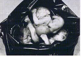 Este bebé fue destrozado con un afilado cuchillo curvo (cureta) mientras se encontraba en el vientre materno. La enfermera debe juntar todas las partes del cuerpo para asegurar que ha sido extraído totalmente o podría sobrevenir una grave infección uterina.